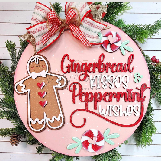 Gingerbread Kisses & Peppermint Wishes Round Sign | DIY Wood Kit