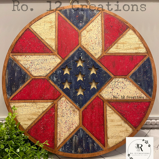 Patriotic Barn Quilt Door RoundRegular price $40.00 USDRegular priceUnit price / per-