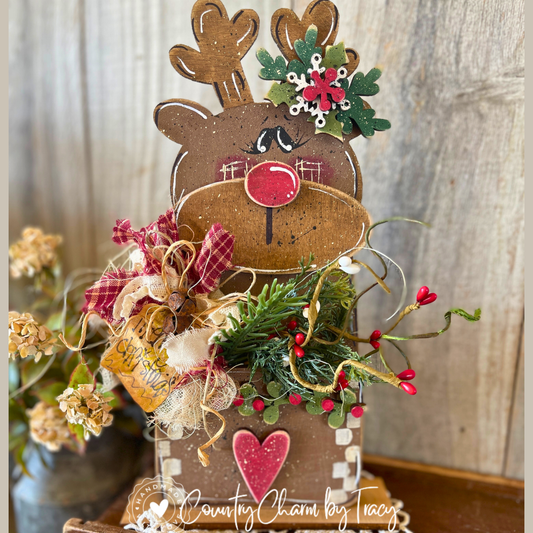 Prim Reindeer Pocket DIY Wood Kit – Unfinished 1/4" Birch | Christmas Craft, Rustic Reindeer Decor, Shelf Sitter