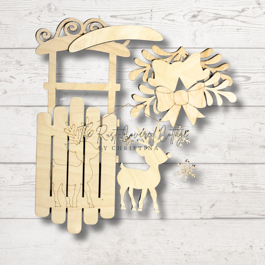 Reindeer Sled Wall Decor | Laser-Cut | Holiday Decor