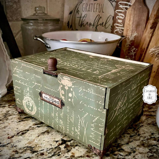 Rustic Recipe Keeper DIY Wood Box | Laser Cut Birch | Farmhouse Kitchen Organizer