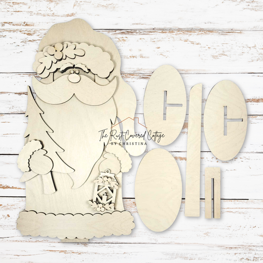 Woodland Santa Shelf Sitter | DIY Christmas Wood Kit | Laser Cut