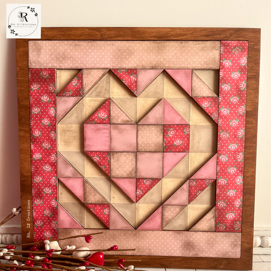 Log Cabin Heart Quilt Block - Laser-Cut DIY Wood Kit, 10.5"x10.5", Birch