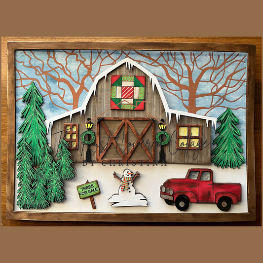 Winter Barn Scene DIY Wood Kit | Unfinished Laser Cut Decor