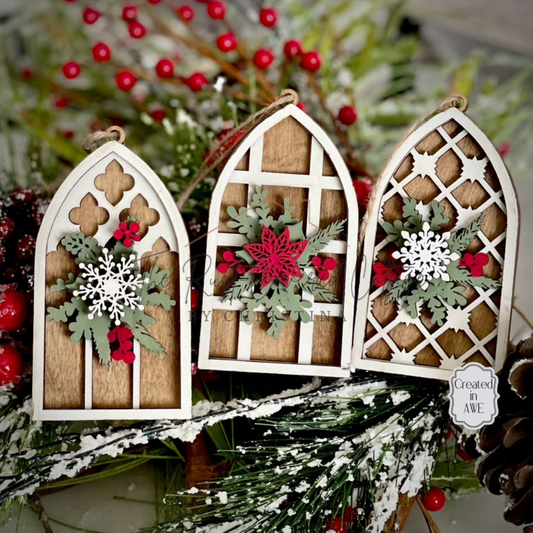 Cathedral Window Ornaments with Holly Embellishments – DIY Laser-Cut Birch