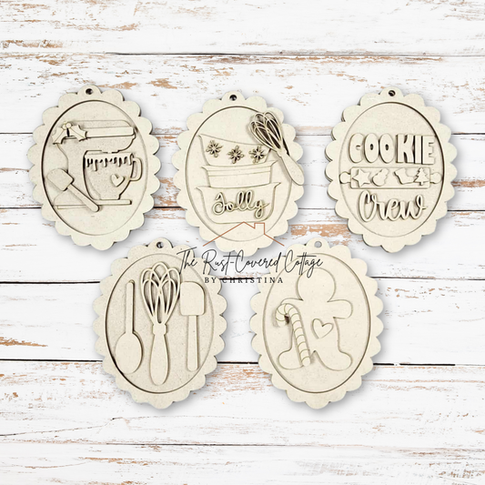 Baking Christmas Ornaments | DIY Holiday Wood Kit | Gingerbread & Kitchen Decor (Set of 5)