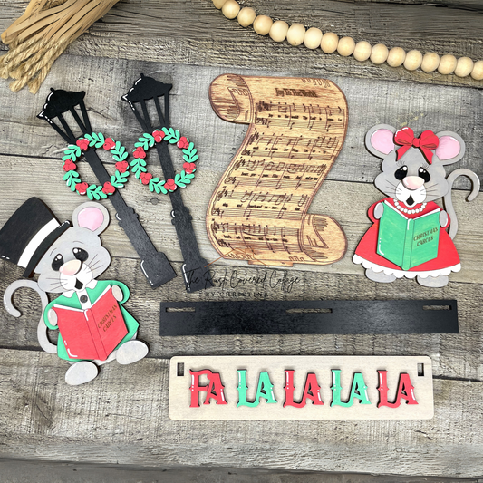 Caroling Mice Wagon Insert | DIY Christmas Interchangeable Wood Kit
