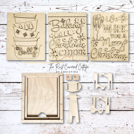 Baking Christmas Cheer Sign Trio | DIY Christmas Wood Signs Kit with Frame & Easels