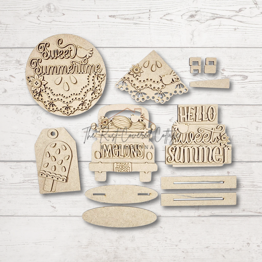 Hello Sweet Summer Watermelon Word Stack DIY Wood Kit – Laser Cut 1/4" Birch | Tiered Tray or Shelf Sitter