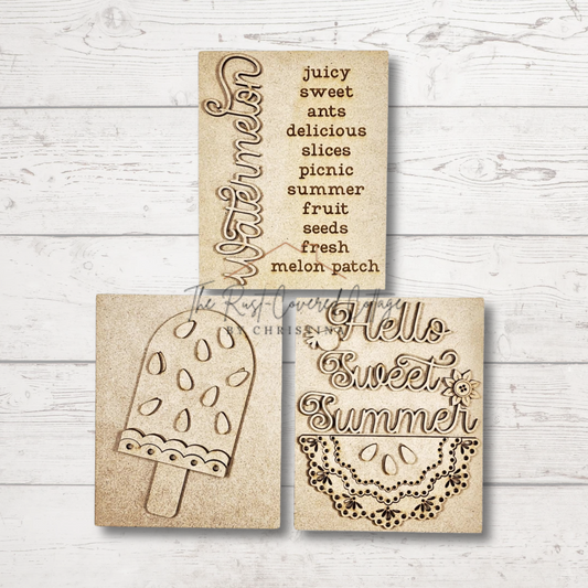 Watermelon Sign Trio DIY Kit – Summer Tiered Tray Decor | 1/4" Birch Wood with Interchangeable Frame & Easels