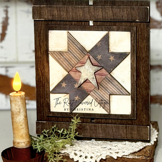 Mini Barn Quilt Block Set | Pinwheel, Ribbon Star, Sawtooth Star & Single Wedding Star