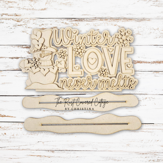 Winter Love Word Art | Layered Valentine Snowman Decor | DIY Wood Kit