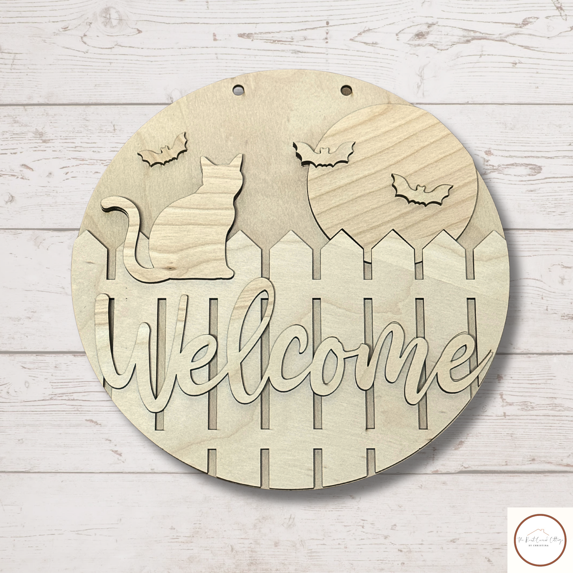 Black Cat Welcome Sign| Laser Cut| DIY Wood Kit