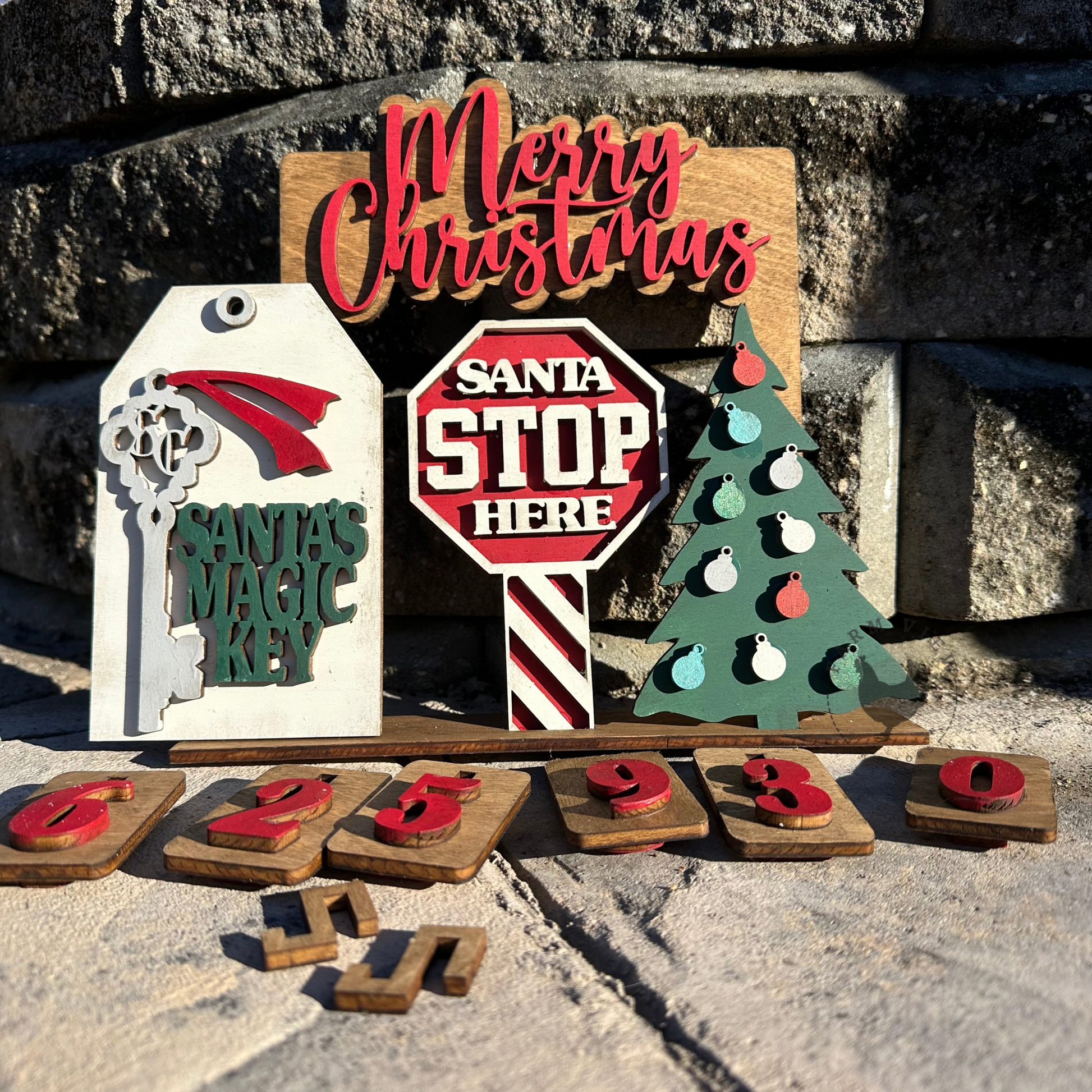 This Christmas Countdown Insert is designed exclusively for the Interchangeable Wagon Collection. Made from 1/4" Birch, this festive DIY wood kit includes layered pieces like the “Santa Stop Here” sign, Santa’s Magic Key tag, ornament tree, Merry Christmas topper, and number tiles to count down the days until Christmas. Perfect for painting and displaying in your wagon all season long.