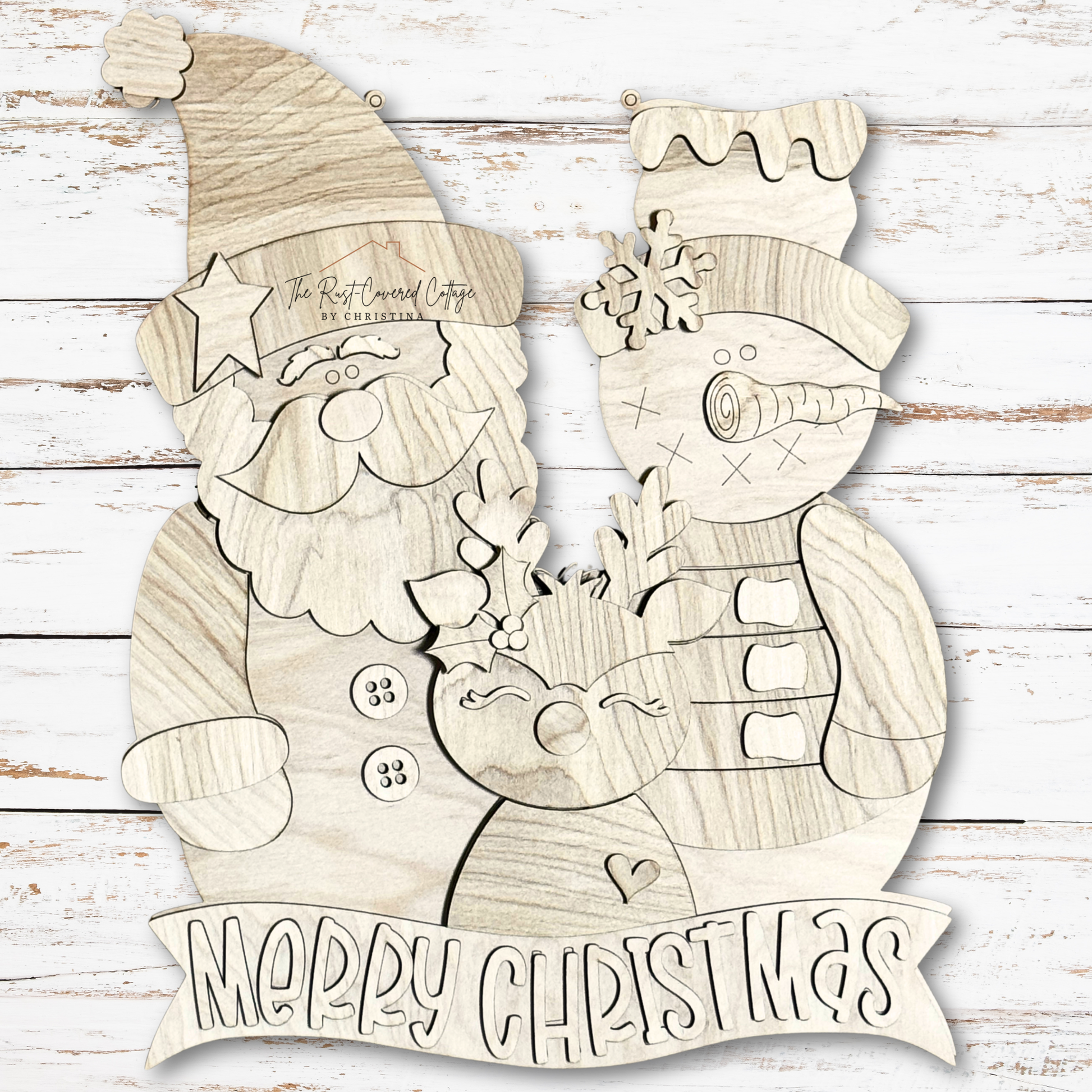Spread Christmas cheer with this Christmas Friends Hanger wood kit featuring Santa, a snowman, and a reindeer gathered together with a “Merry Christmas” banner. Each piece is laser cut from 1/4” Birch with layered details for a dimensional finish.