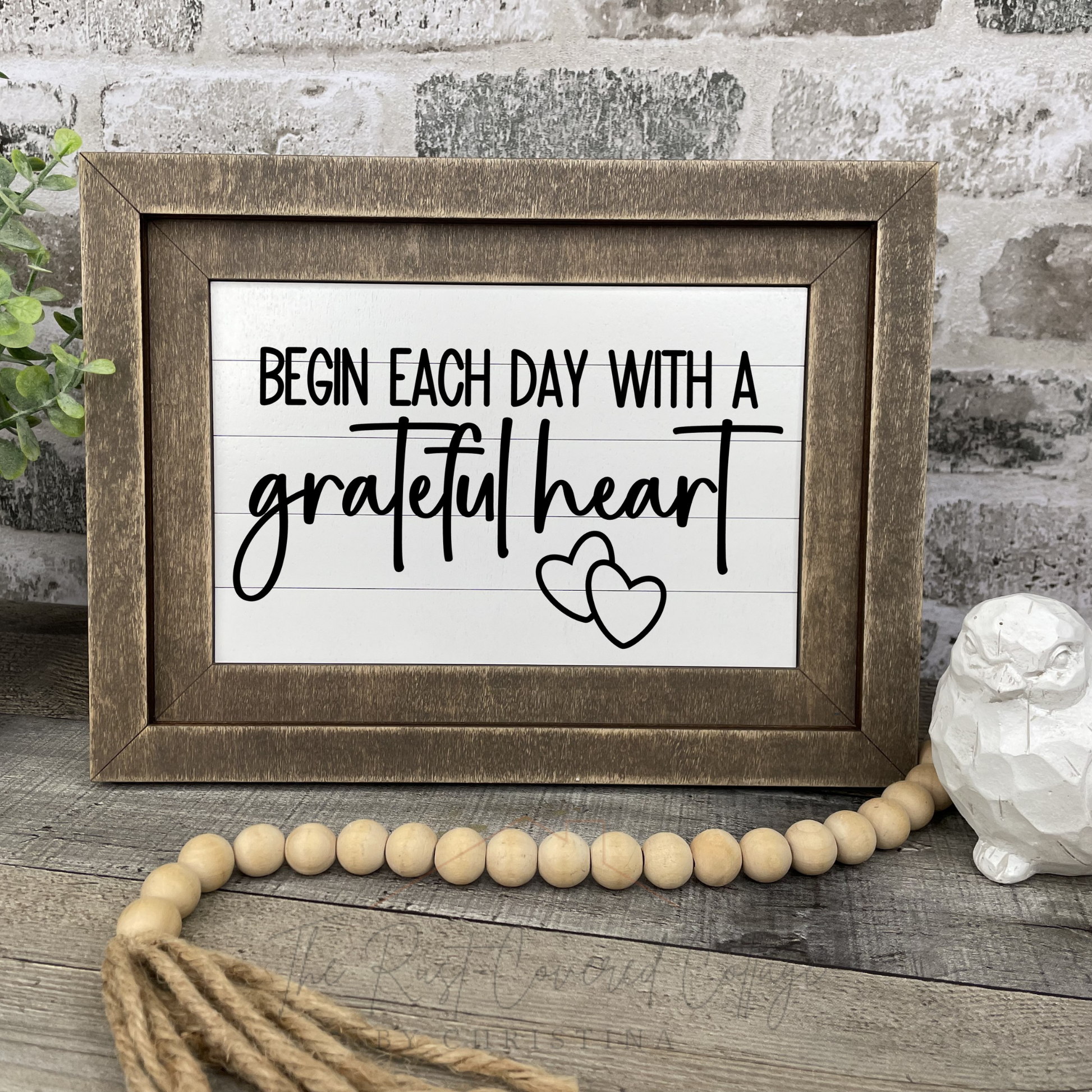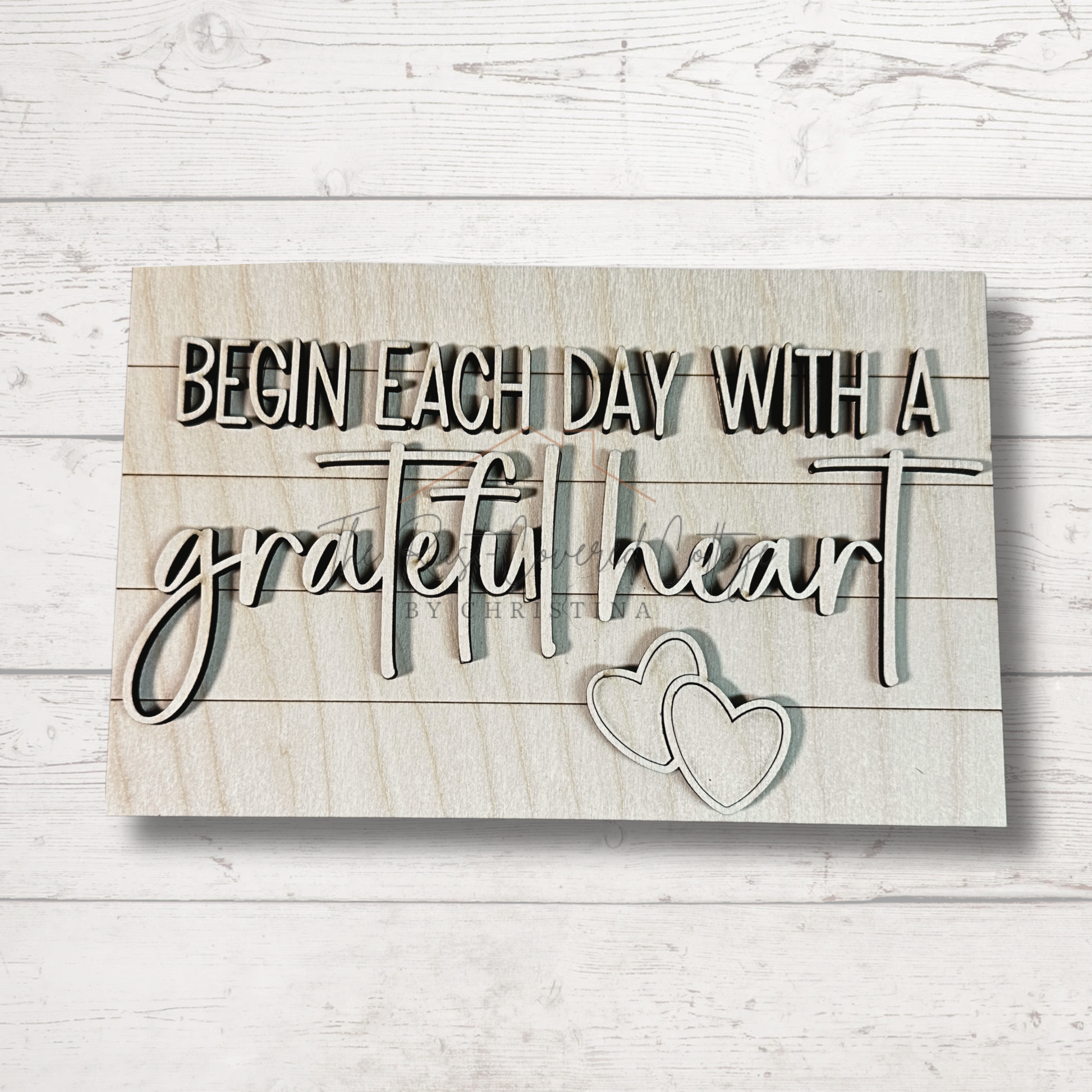Embrace positivity and gratitude with this inspiring "Begin Each Day with a Grateful Heart" insert, perfectly crafted to fit your Farmhouse Frame (sold separately). Measuring approximately 5" x 7.75", this laser-cut kit is made from 1/4" Birch, featuring a clean shiplap-style background that’s ready for your creative touch. Whether painted or left in its natural beauty, this piece adds warmth and encouragement to any space. A thoughtful DIY project and a meaningful addition to your home!