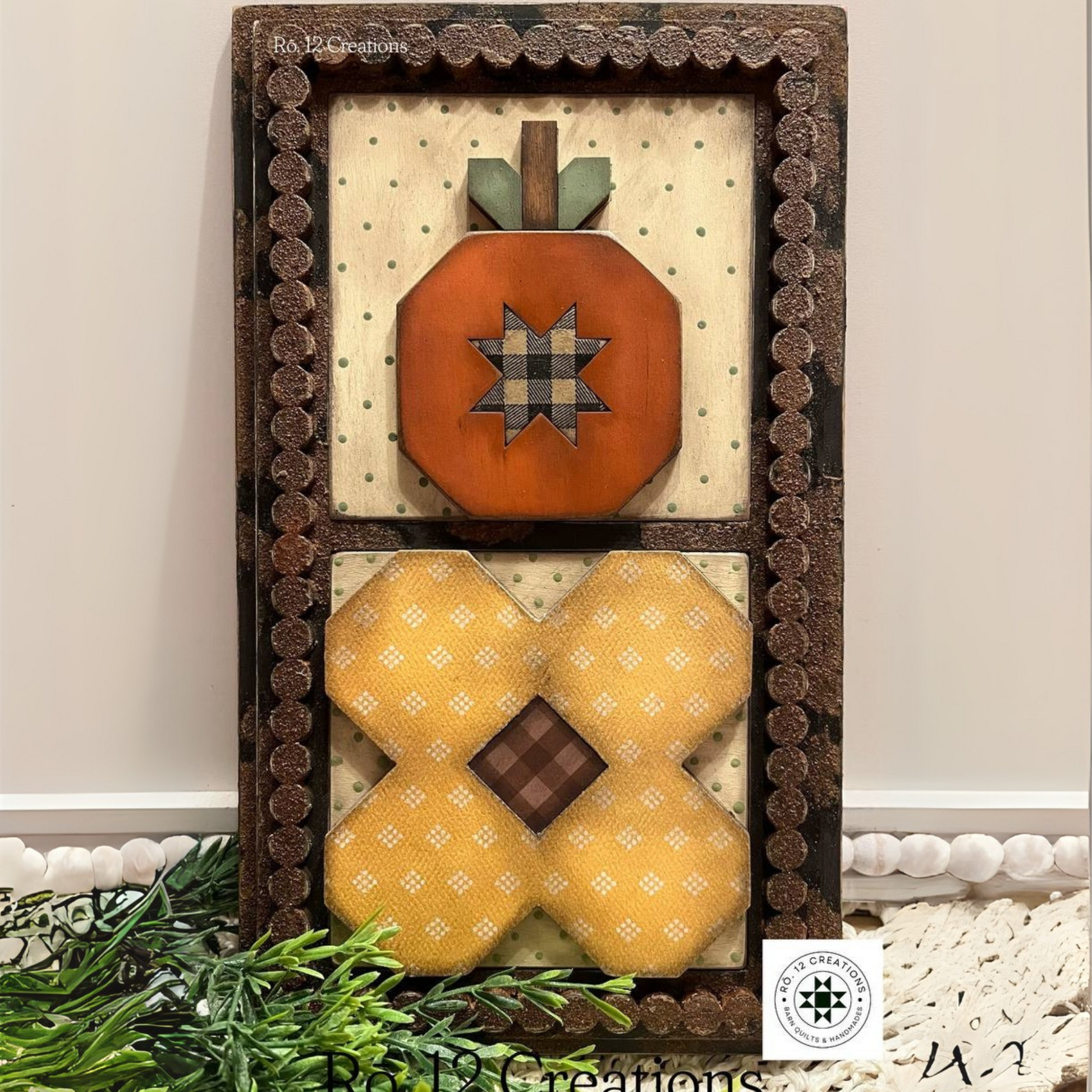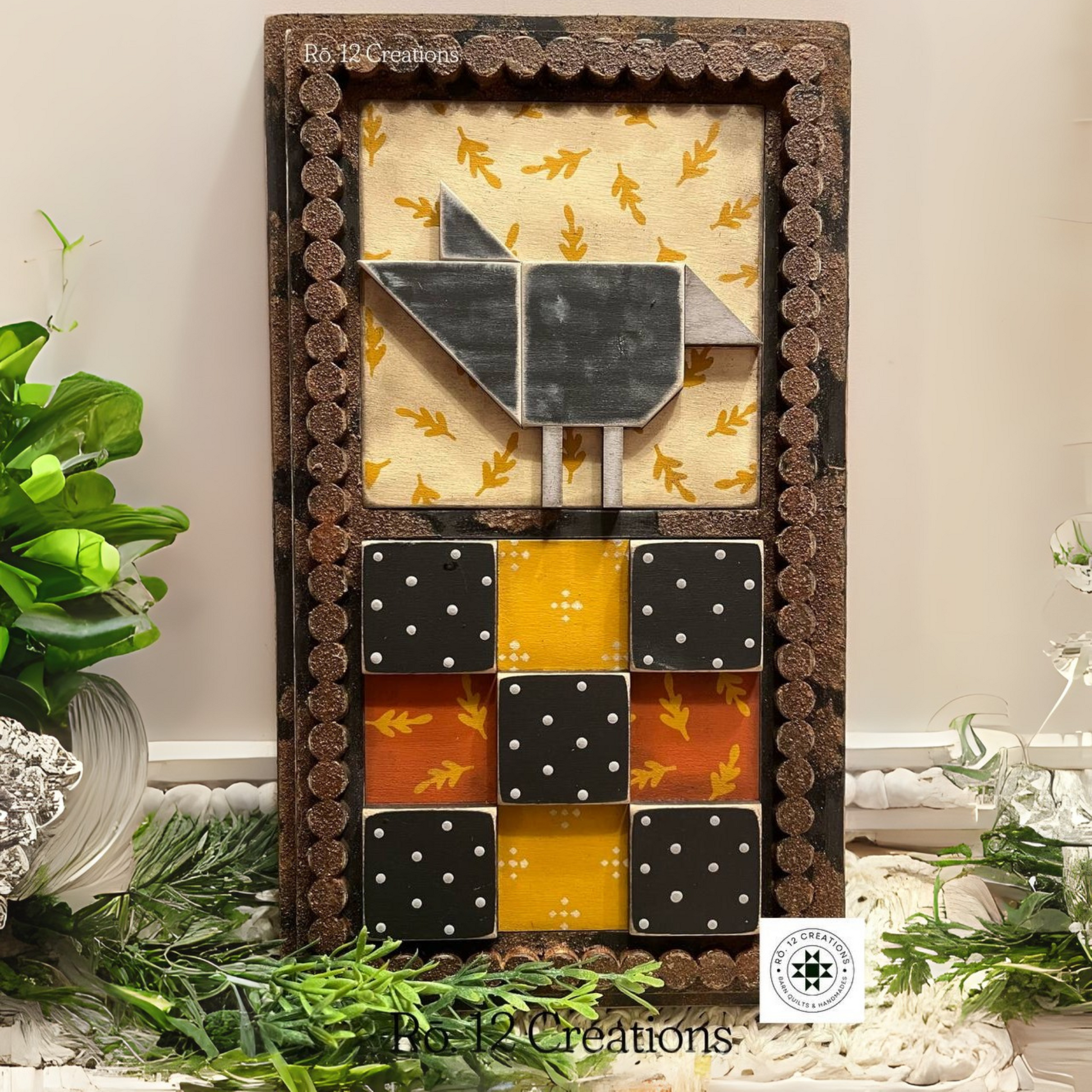 Mini Barn Quilt Block Set – Nine Patch, Pumpkin, Crow & Sunflower (4 pc)