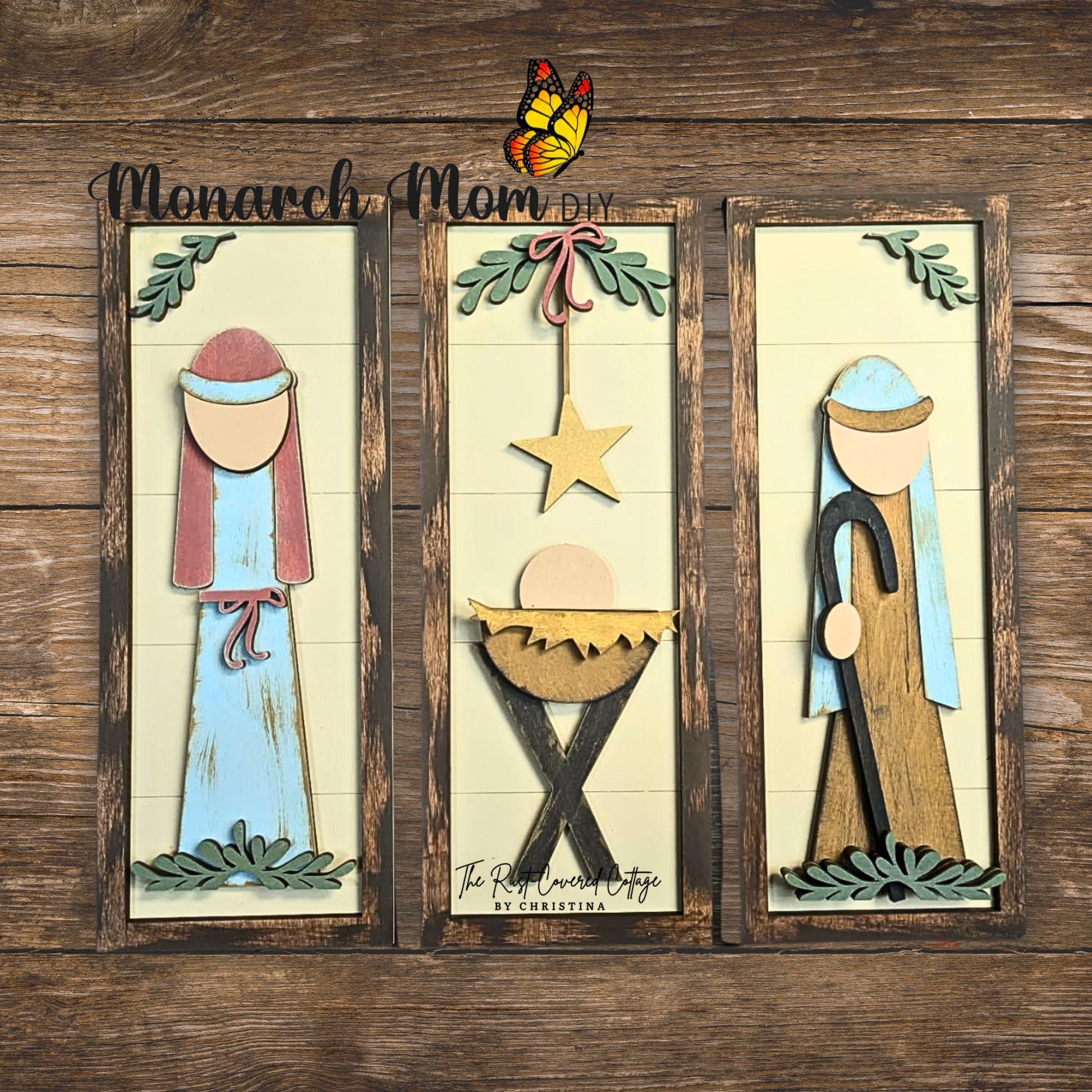 Celebrate the true meaning of Christmas with this Nativity Silhouette Sign Trio. Featuring Mary, Joseph, and Baby Jesus, this beautiful set is laser cut from 1/4” Birch and ready to paint, stain, or display unfinished. Each panel includes etched details for easy painting and layering.