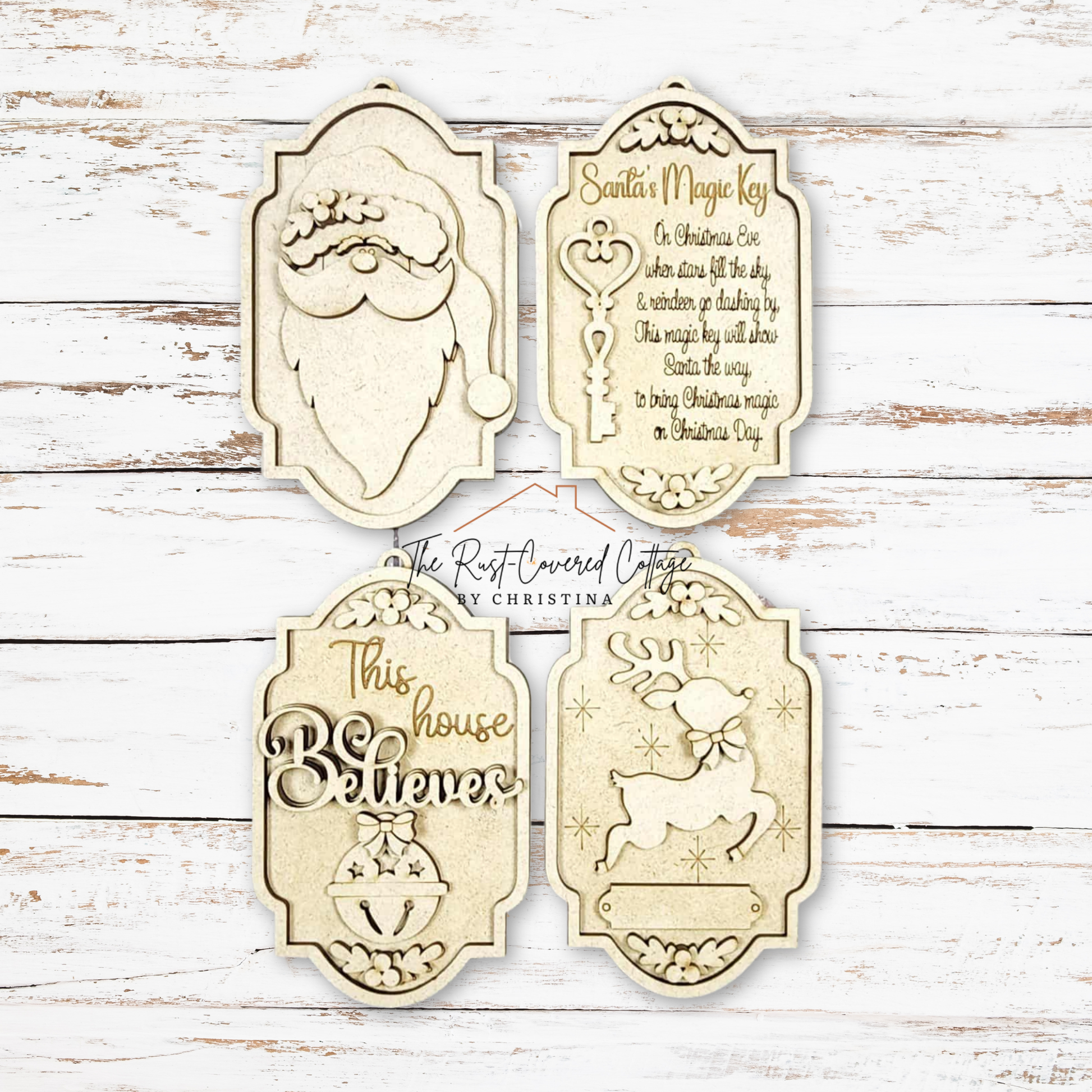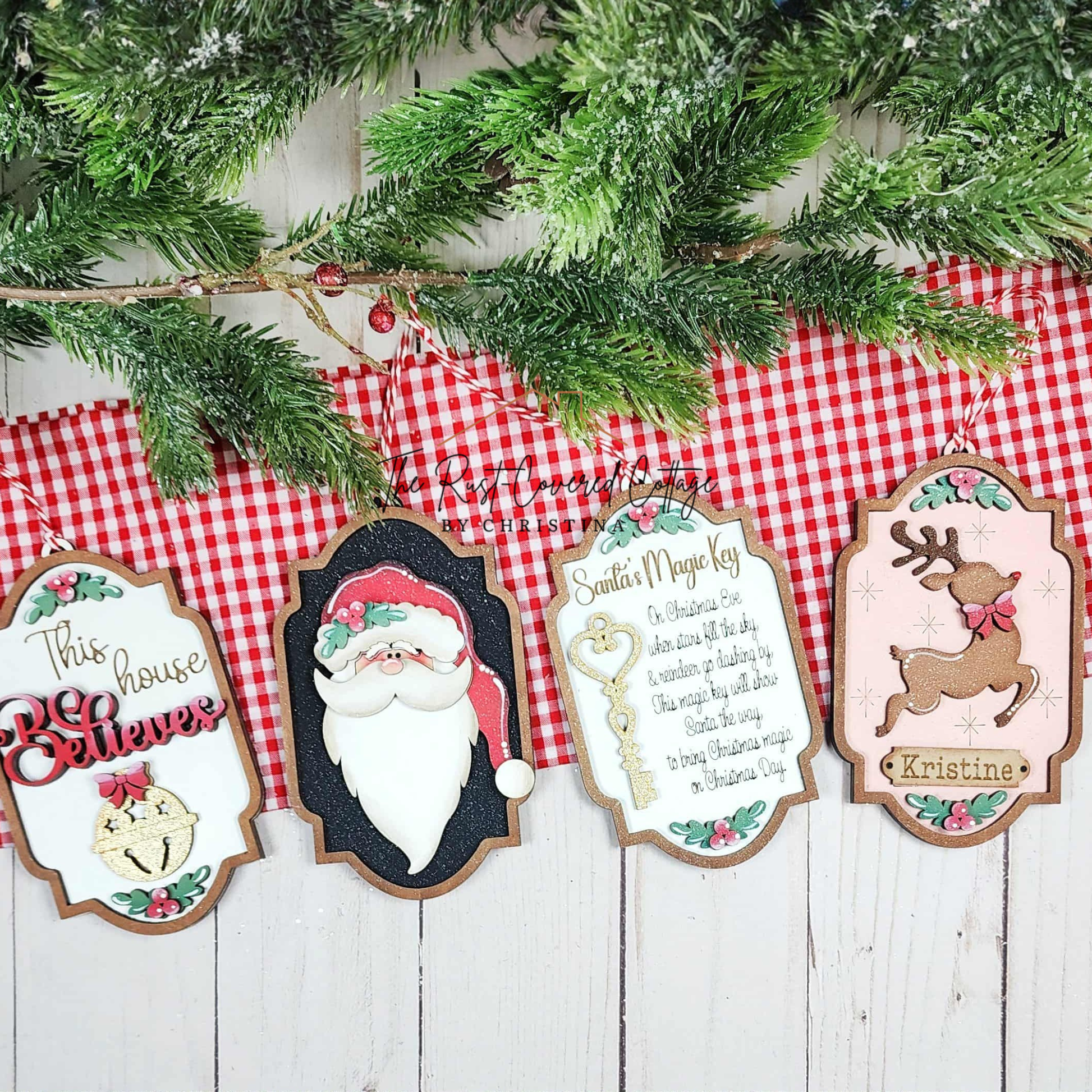 North Pole Ornament Set | Layered Christmas Wood Ornaments | Laser Cut 1/8" Sanded Plywood