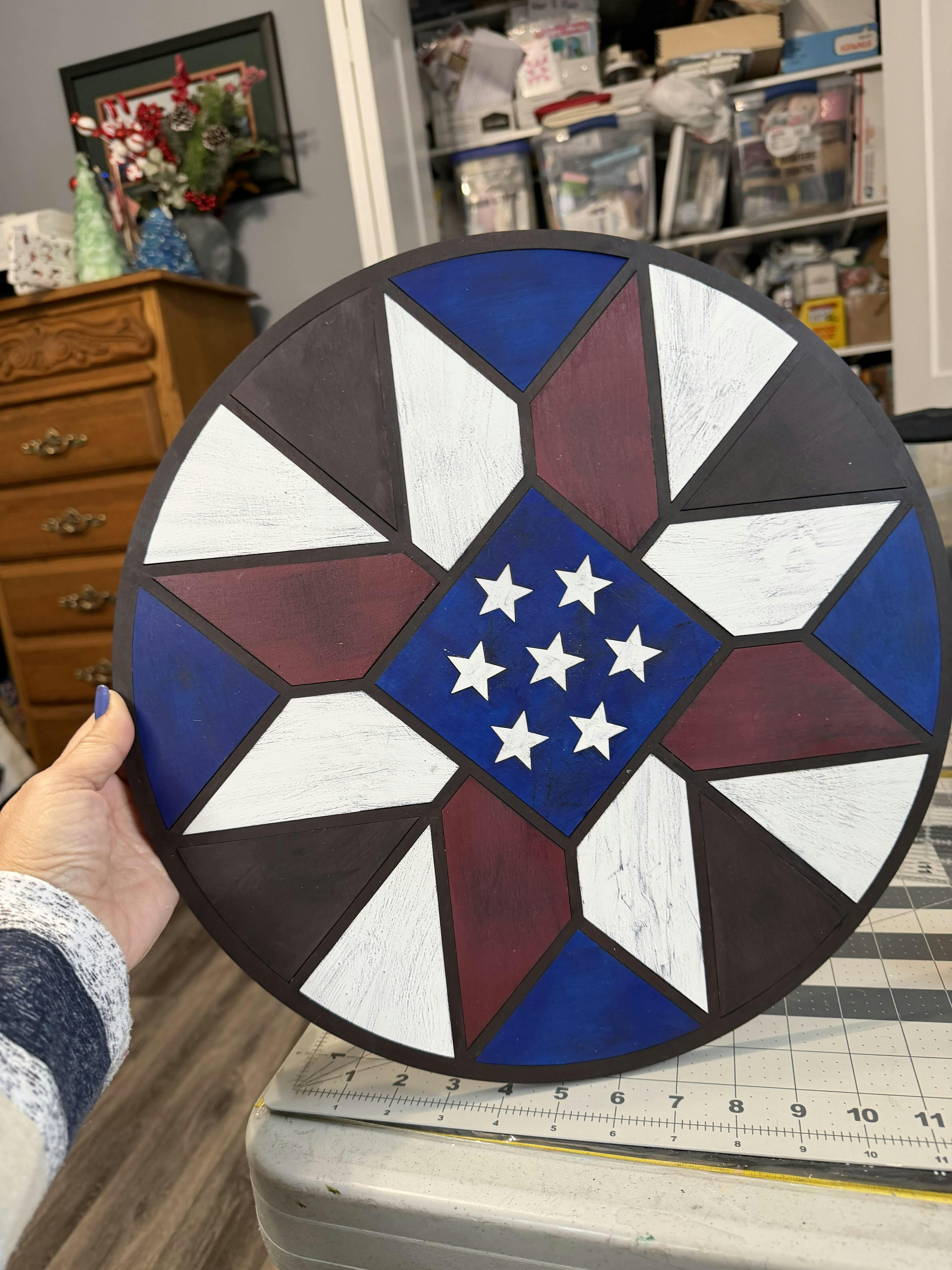 Patriotic Barn Quilt Door Round