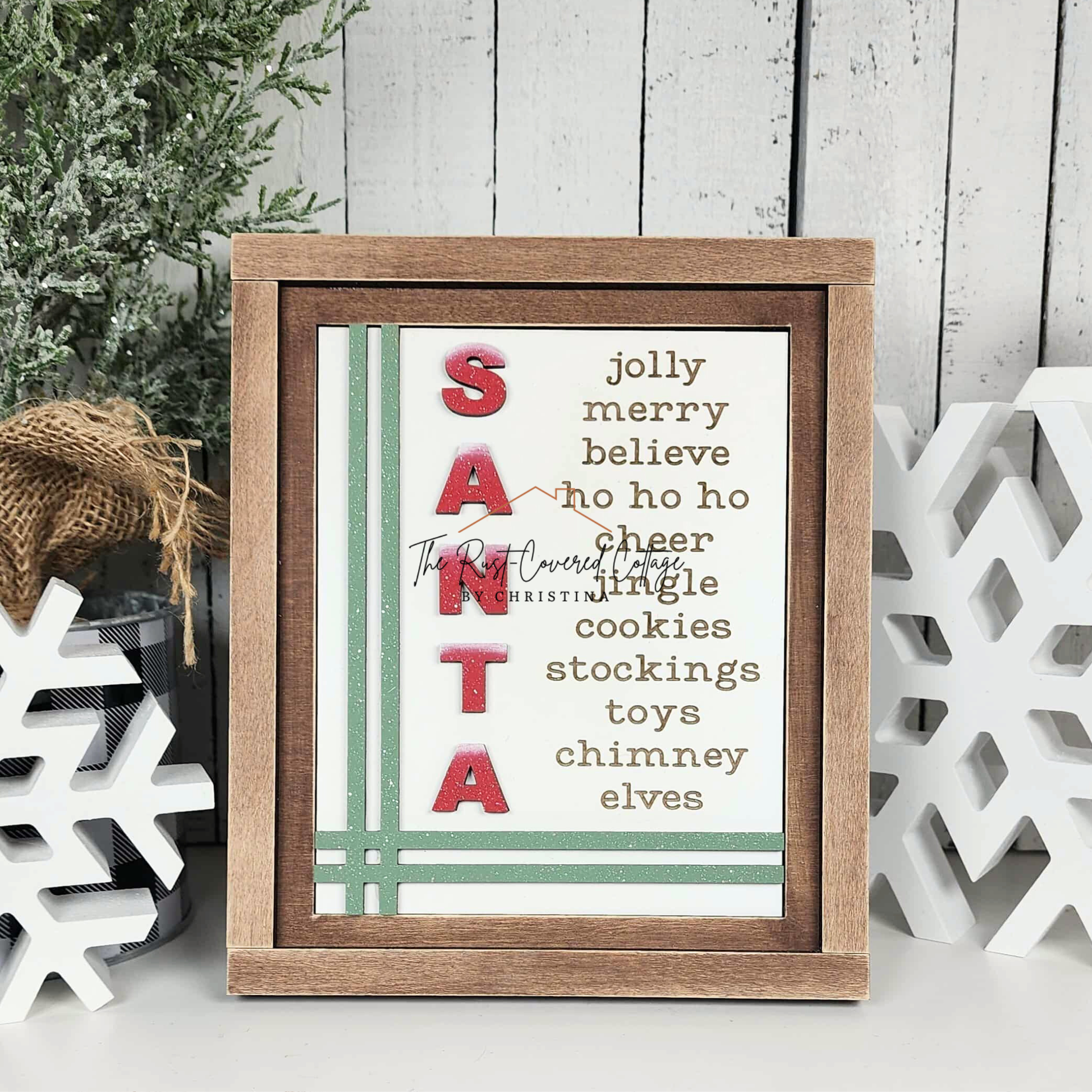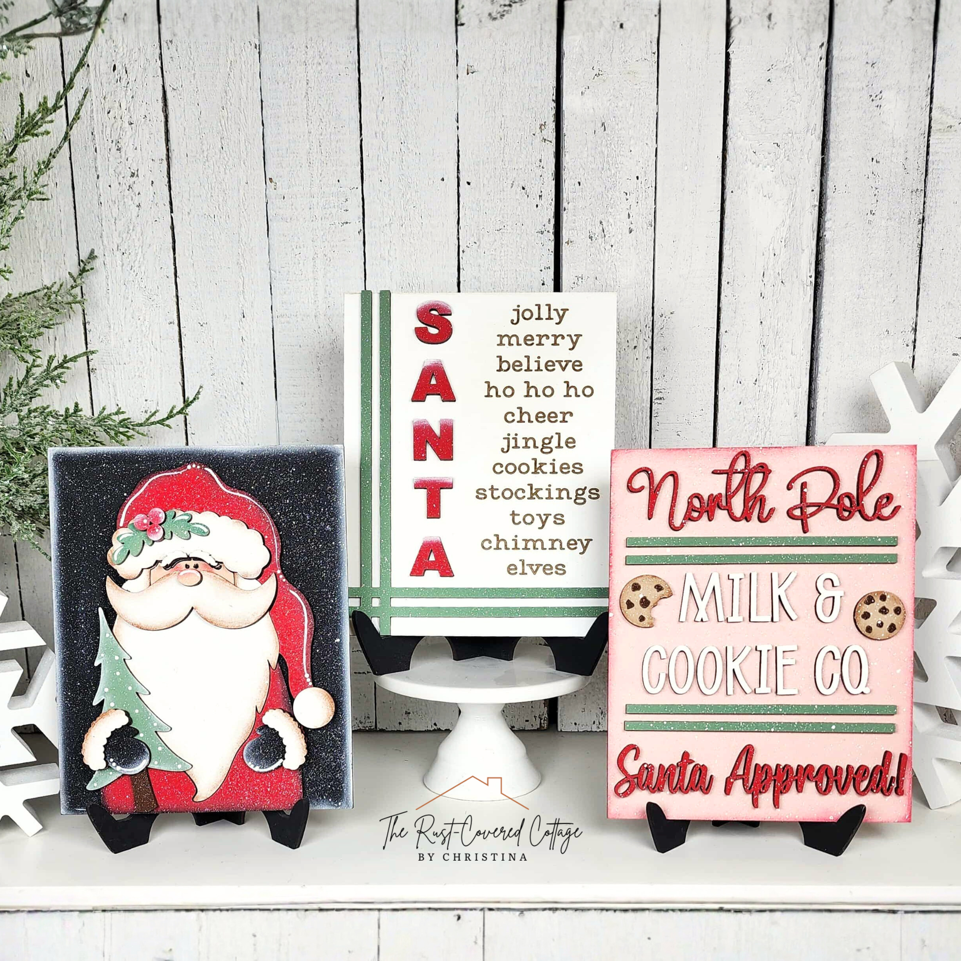 The North Pole Sign Trio is a festive way to add handmade charm to your holiday décor. This multi-layered set includes three interchangeable Christmas signs that fit perfectly in the included Farmhouse frame. Each piece captures a cheerful seasonal theme — Santa, North Pole Milk & Cookie Co., and a classic holiday word sign.
