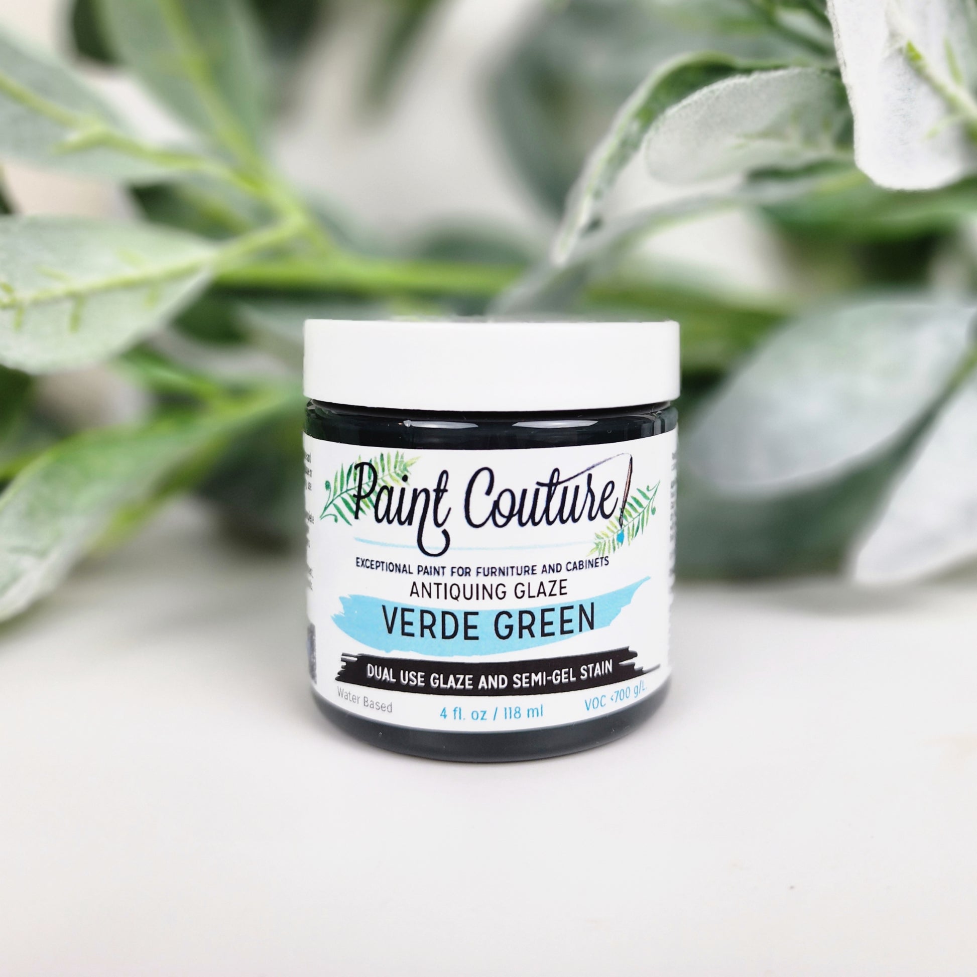 Verde Green Antiquing Glaze by Paint Couture is a rich, deep green glaze designed to add timeless character and dimension to your painted surfaces. This water-based, dual-use glaze and semi-gel stain is perfect for aging, accentuating details, and creating depth on furniture, cabinets, and décor pieces. Ideal for brushing, wiping, or dry brushing over a base coat, it provides a professional antiqued look with ease.
