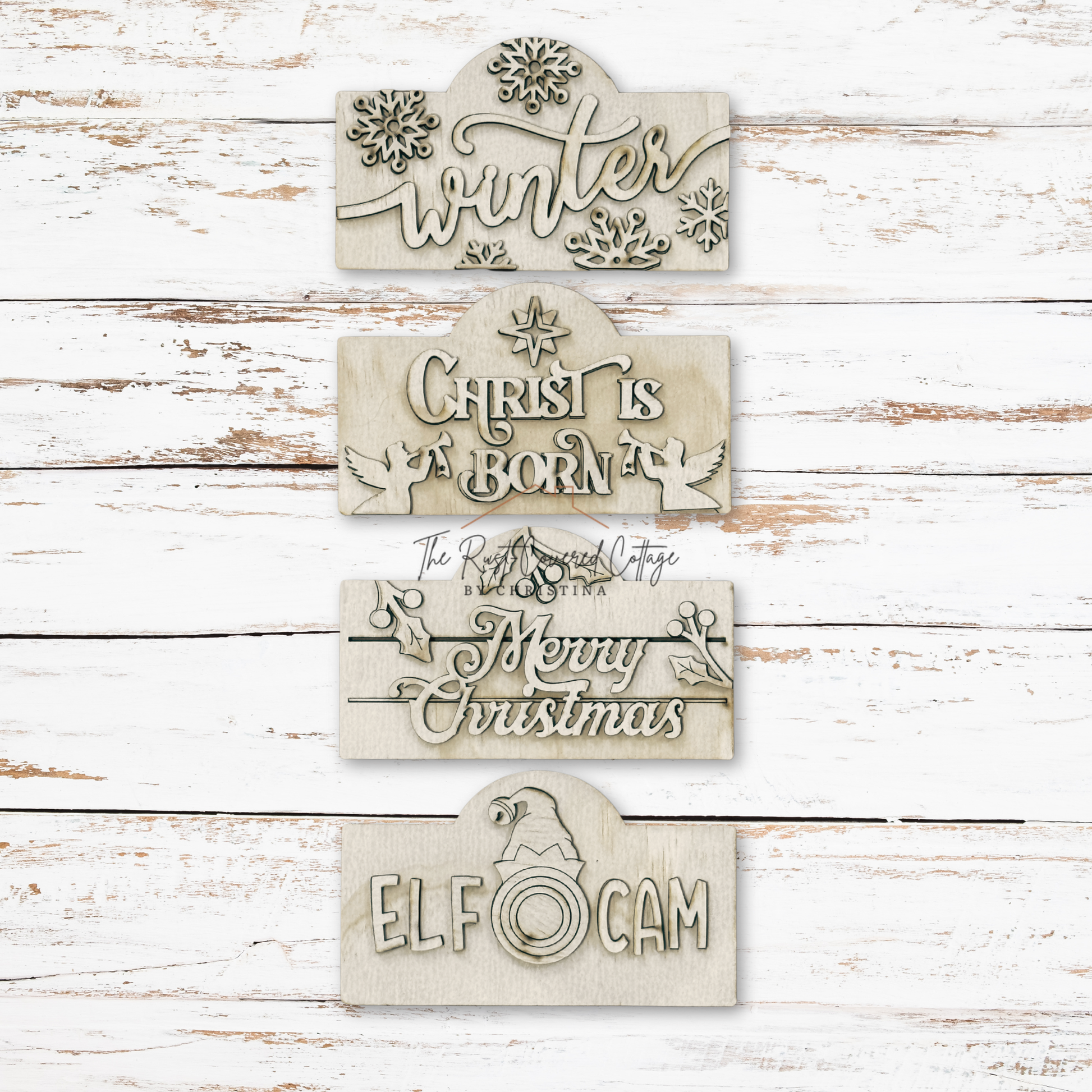 Celebrate the season with our Winter Blessings Interchangeable Sign Bundle, designed to complement your Mini Sign Holder (sold separately). This bundle includes four detailed signs: